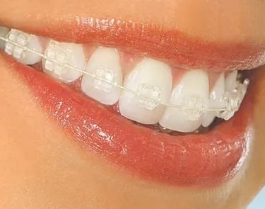 Aparelho Fixo Estético: semelhante ao metálico, mas confeccionado em porcelana ou safira, sendo mais discreto e estético.