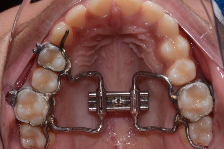 Aparelho Expansor: usado principalmente em crianças e adolescentes, corrige o formato do arco dentário, criando espaço para os dentes.